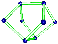 The t-AlF3 structure did not presented new rings of AB6 octahedra. The whole 6-connected 3D net family is built from rings of 3, 4, 5 and 6 octahedra. However, four new building units were inside t-AlF3. The 6 previously known are tetrahedra of octahedra 34 (a geomerical object bounded by 4 triangular faces), prisms with triangular basis 3243 (2 triangular faces and 3 tetragonal faces), tetragonal basis 46 (six tetragonal faces : a cube), pentagonal basis 4552, hexagonal basis 4662 and finally the Friauf polyhedra 3464 characterizing the pyrochlore structure. Only the A atoms at the net points are shown below for the four new building units existing in t-AlF3 :
