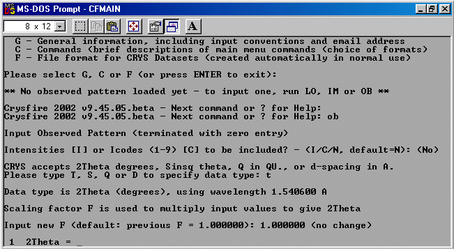 peak positions and Edit, Paste into CRYSFIRE (Windows allows you to do this for DOS "Windows")