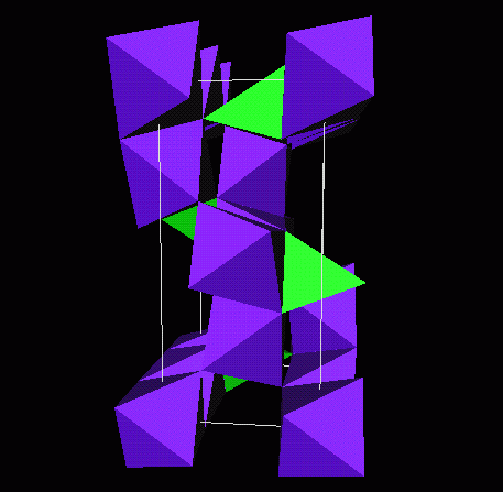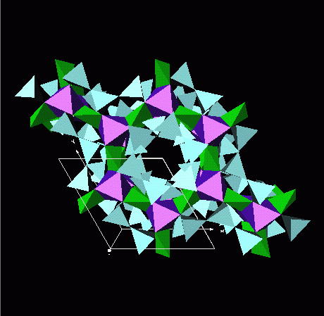 form alternate layers with green BeO4 tetrahedrae and purple AlO6 octahedrae. Note the zeolite-like
