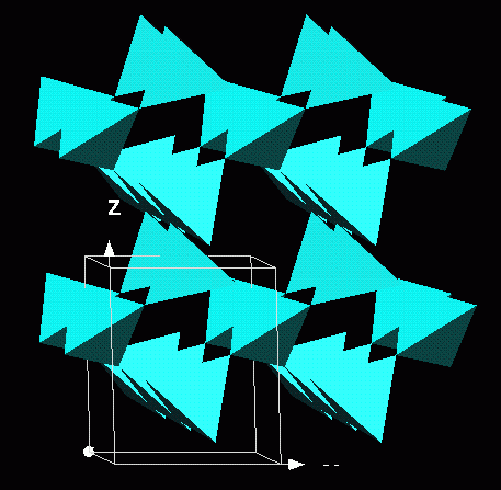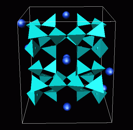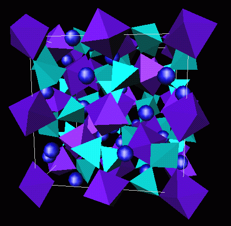 is very rare and expensive. Again the blue sodium cations sit in holes in an edge connected net of
