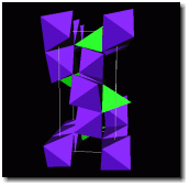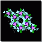 form alternate layers with green BeO4 tetrahedrae and purple AlO6 octahedrae.  Note the zeolite-like