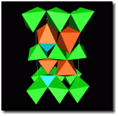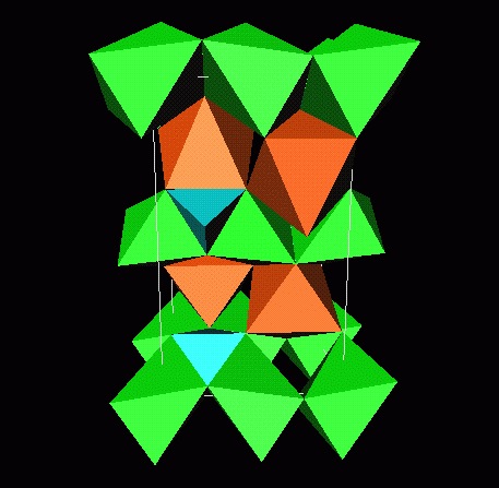 used as an ornamental stone, and sometimes as gemstone. The usual co-ordination polyhedrae drawn here