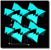 Red Beryl from the Wah Wah Mountains of Utah. Here the blue SiO4 corner connected tetrahedrae