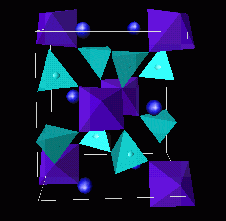 cations are sitting in holes in the corner connected net of AlO6 octahedrae and SiO4 tetrahedrae.