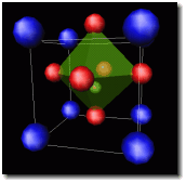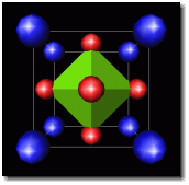 and red X-anions, often oxygen, are cubic close packed, with the smaller B-cations