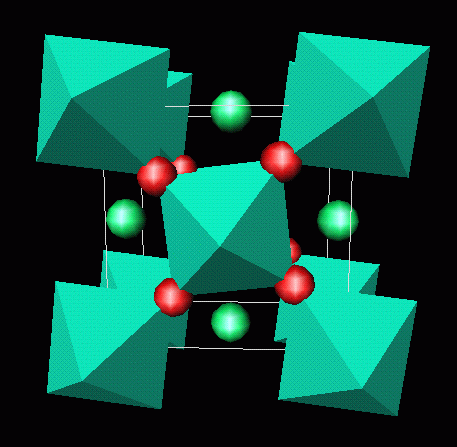 At high temperature, the small green B-cations can "rattle around" in the larger holes between oxygen,