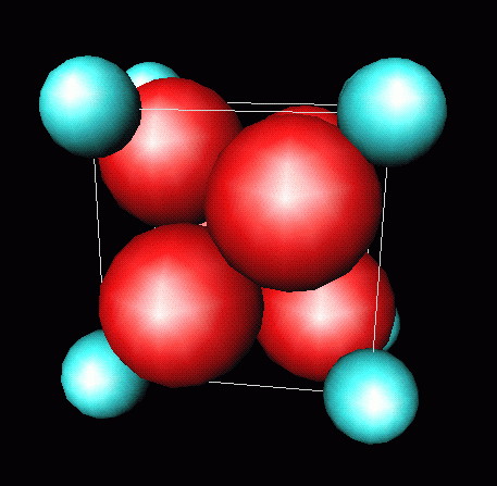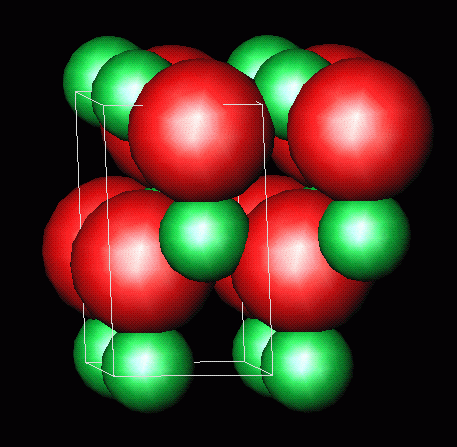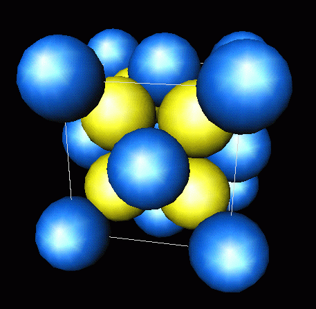 structure (shown opposite) is favoured, with the sites of the cations (blue) and anions (yellow) interchanged. The