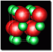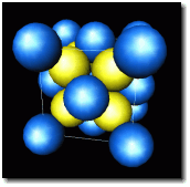 structure (shown opposite) is favoured, with the sites of the cations (blue) and anions (yellow) interchanged.  The