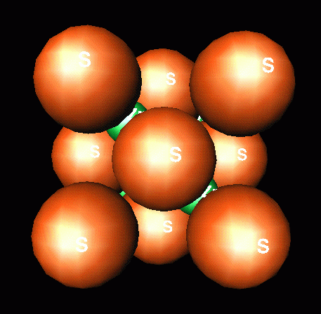 ¶ball-and-stick model. As well as CCP cubic close packing ABCABC.. of the large anions as in zinc blende,