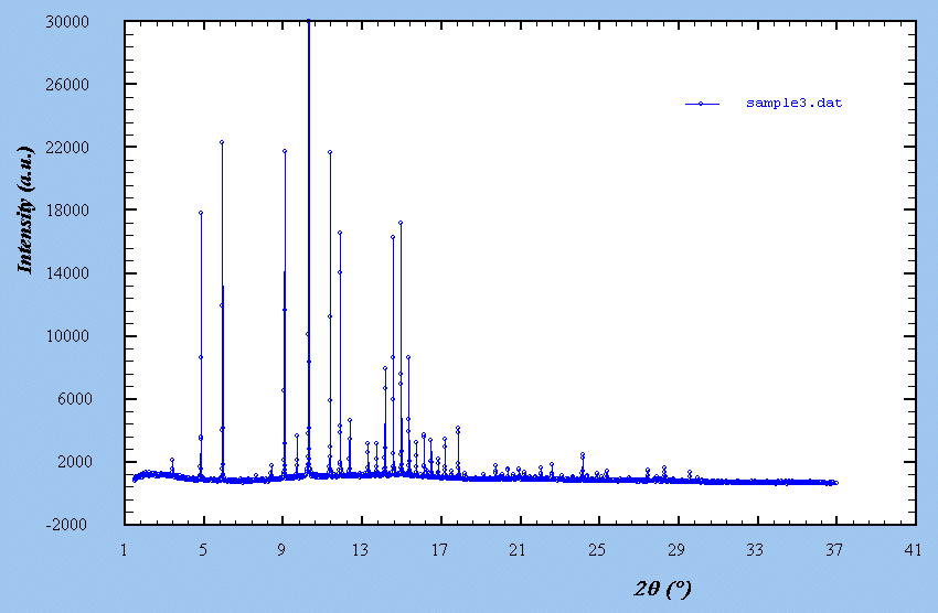 - Reflection laboratory X-ray data from a Bruker D8 Advance diffractometer, CuKalpha, very few sample (40 mg)